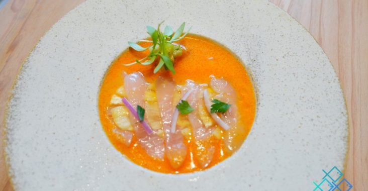 你看這色彩飽滿、鮮豔的擺盤,是不是光是下定決心動口品嚐都有點捨不得?我與老吳出發前,還特定搜尋youtube紅甘的美味影片(笑);鮮甜的紅甘佐獨門醬汁帶著一點酸、一點辣,是一道相當厲害的開胃菜,必吃無疑!
